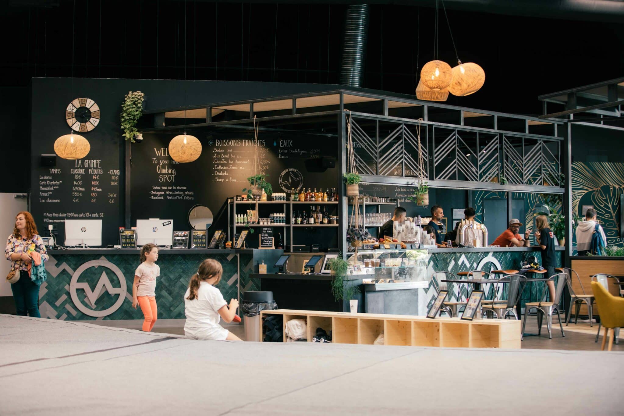 Pour reprendre des forces après votre séance d’escalade ou pour le simple plaisir, notre espace restauration & bar vous accueille toute la journée dans un cadre unique. Complètement ouvert sur les blocs d’escalade et avec une décoration mêlant urbanisme, acier et bois chaleureux, l’espace bar-restaurant propose une ambiance unique, en intérieur comme sur notre terrasse.